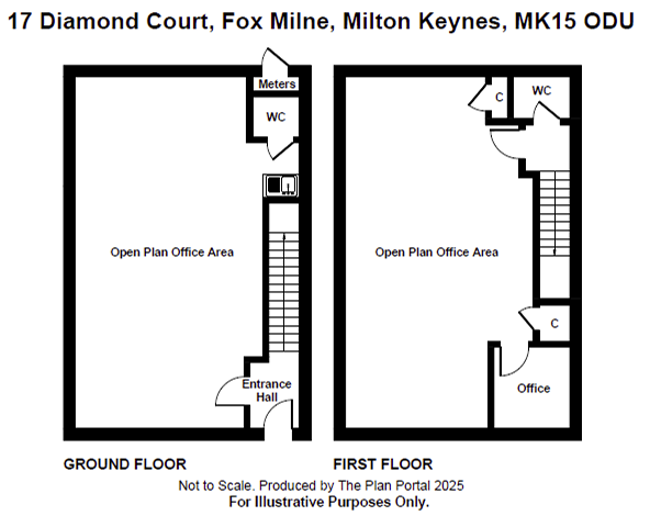 Ground Floor: Entrance Hall with stairs to first floor, open plan office area with kitchenette,